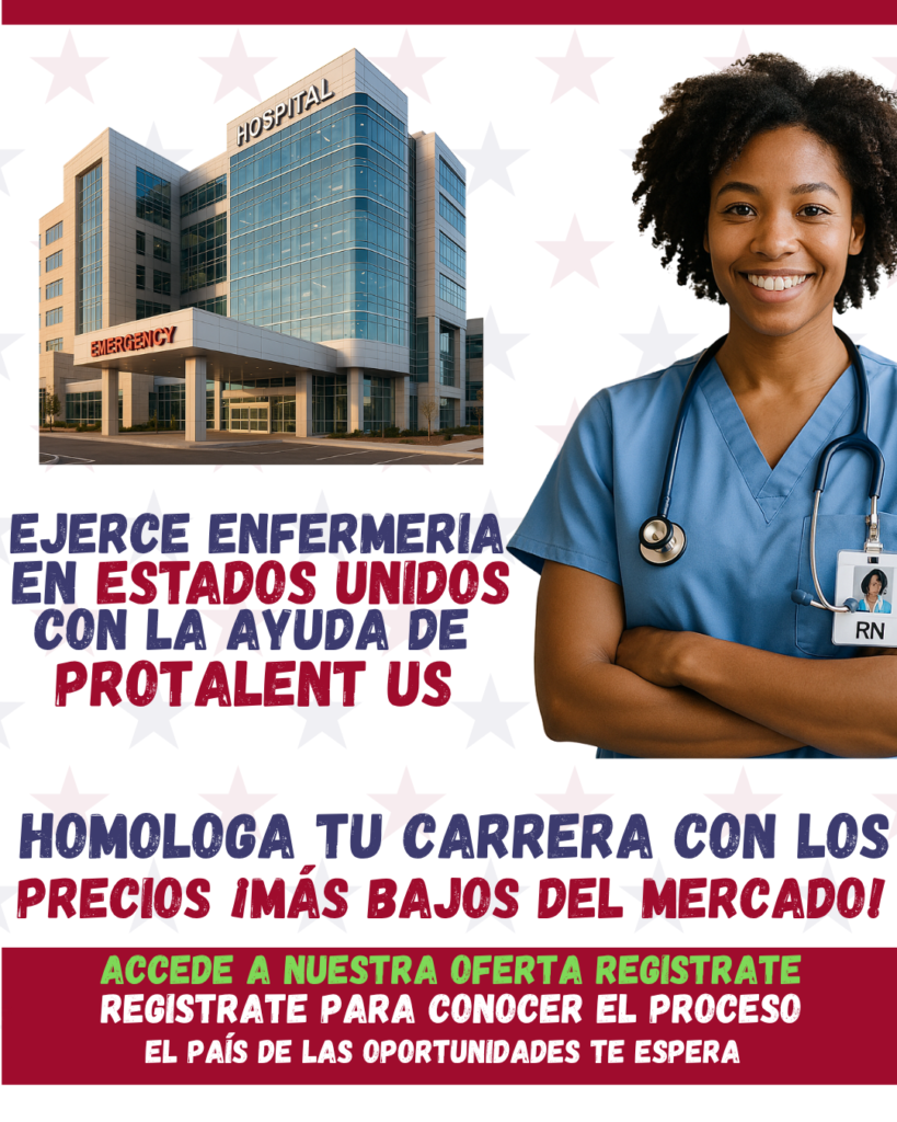 Elegir trabajar como enfermera en Estados Unidos es una decisión transformadora que abre un mundo de oportunidades profesionales y personales. Desde la homologación de tu título hasta la preparación para el examen NCLEX-RN y la llegada al país, cada paso es una inversión en tu futuro. Con el respaldo de ProTalent, tendrás las herramientas y el apoyo necesarios para navegar este proceso con confianza. No solo podrás ejercer en un entorno dinámico y diverso, sino que también te integrarás a una comunidad que valora tu experiencia y dedicación. ¡Prepárate para dar el siguiente paso en tu carrera y alcanzar tus sueños en la enfermería en EE.UU.!